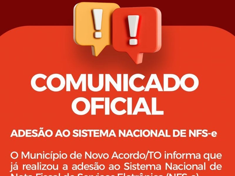 A Prefeitura de Novo Acordo, por meio da Secretaria Municipal de Finanças, deu um passo importante no processo de modernização administrativa e desburocratização tributária. O município confirmou oficialmente sua adesão ao Sistema Nacional de Nota Fiscal de Serviços Eletrônica (NFS-e), um padrão unificado que facilita a emissão de documentos fiscais e integra o município às diretrizes tecnológicas do Governo Federal.