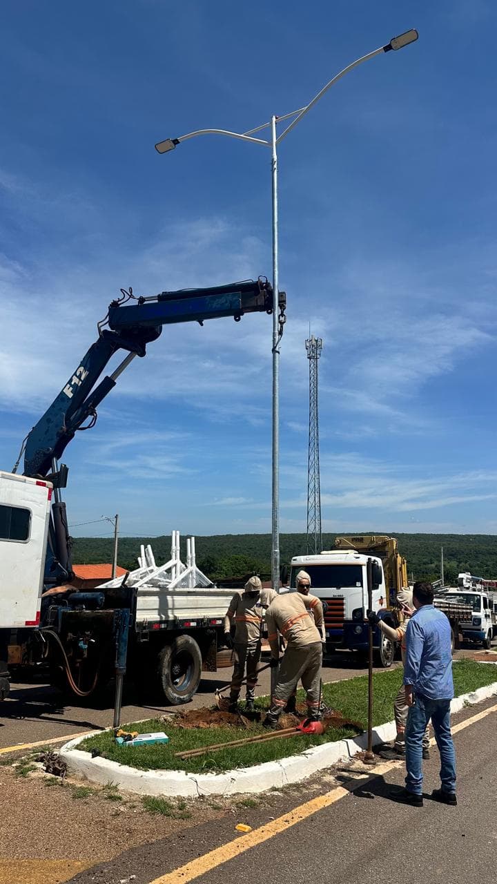 A equipe municipal acompanhou as primeiras ações do trabalho que vai modernizar a iluminação pública urbana de Novo Acordo. Os recursos foram destinados pelo deputado federal Carlos Gaguim